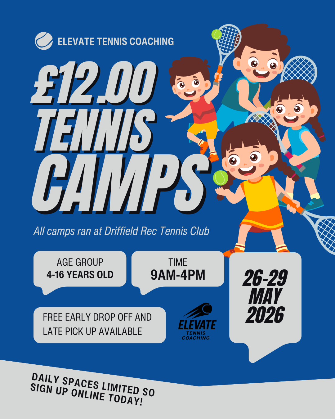 We’re very excited to be running tennis camps at Driffield Rec Tennis Club for the first time!